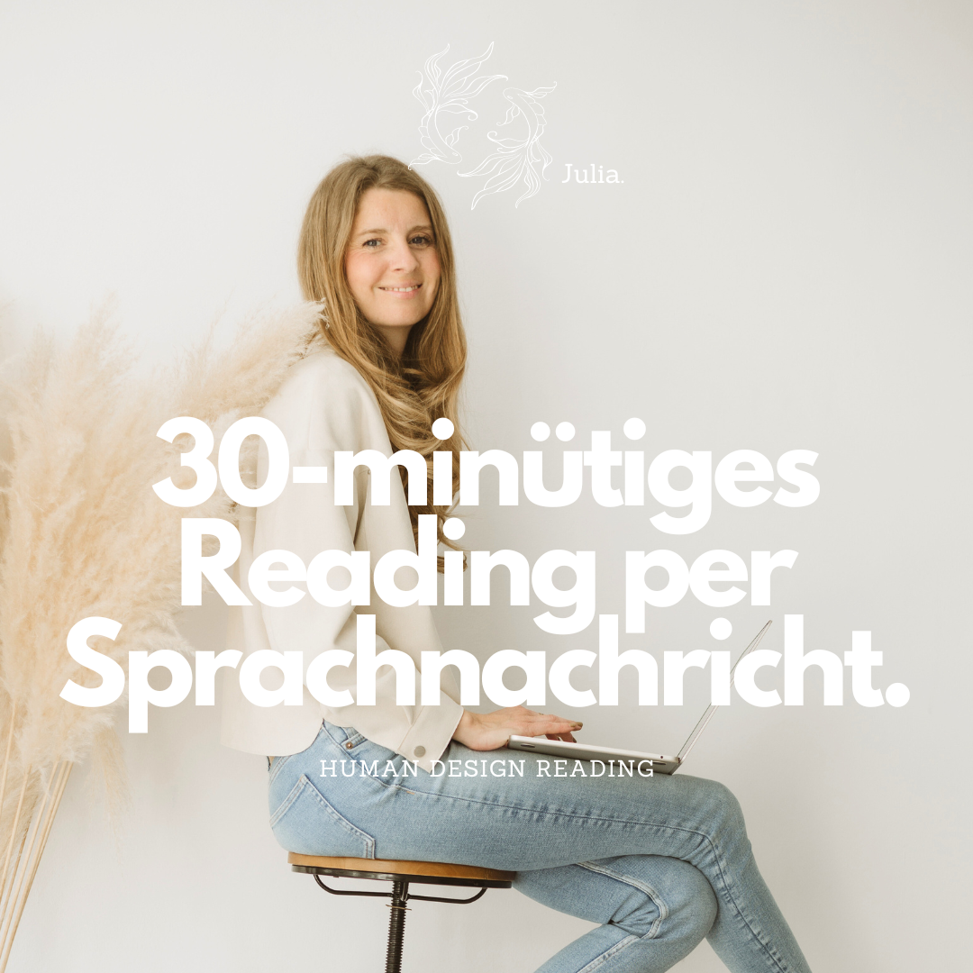 Du möchtest gern mehr über dein Human Design Chart erfahren?? Dann ist mein neues 30-minütiges Reading per Sprachnachricht genau richtig für dich! Du schickst mir deine Daten und ich fühle mich inuitiv in dein Chart ein. Du kannst mir sehr gern deine Fragen stellen und auch mitteilen, wenn du bestimmte Bereiche deines Charts schon gut kennst, ich gehe gern auf all das ein, was für dich wichtig ist!